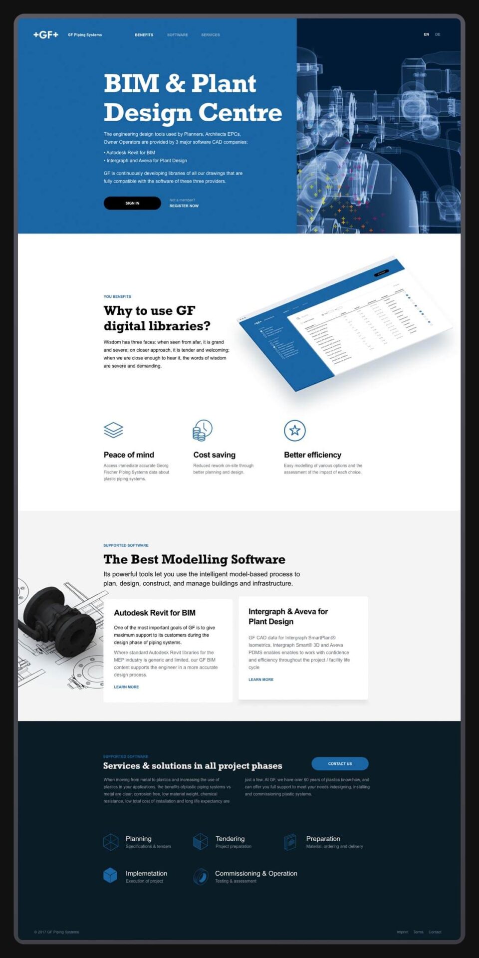 Planen soll Freude machen. Für GF Piping Systems haben wir die CAD-Bibliothek komplett neu gedacht. Modernes Design, klare Strukturen und smarte Technologien machen den Planungsprozess für Kunden übersichtlich, schnell und stressfrei. Alles, was zählt, ist sofort greifbar und leicht nutzbar.