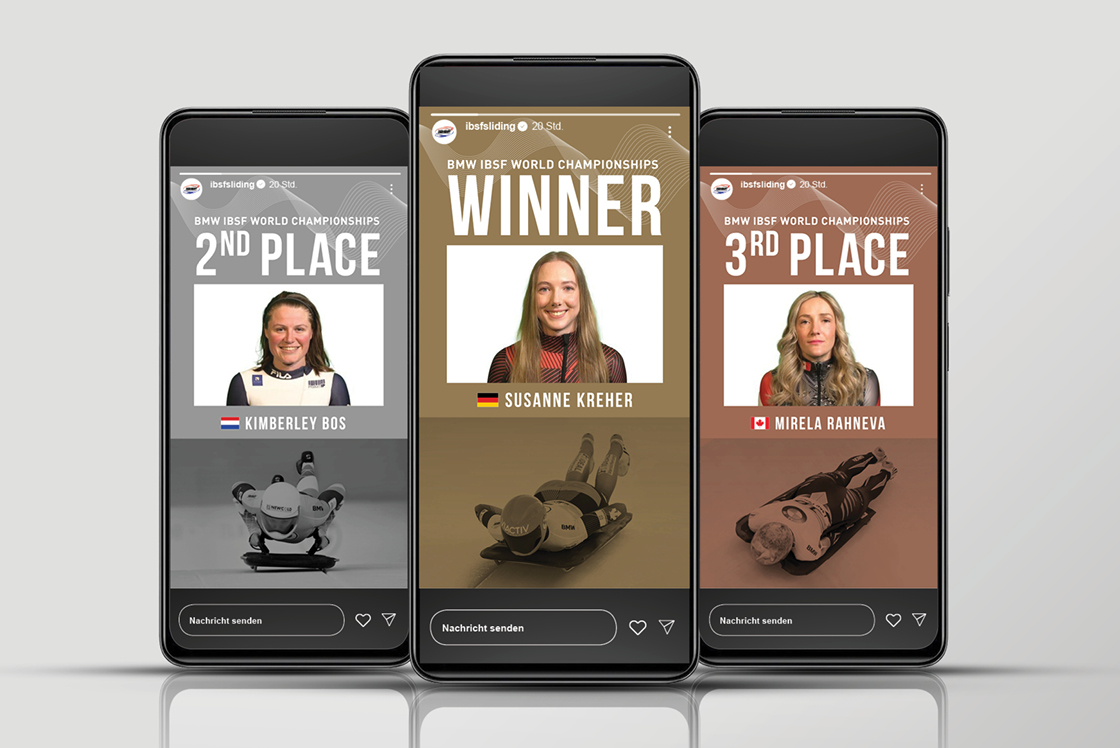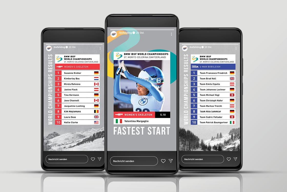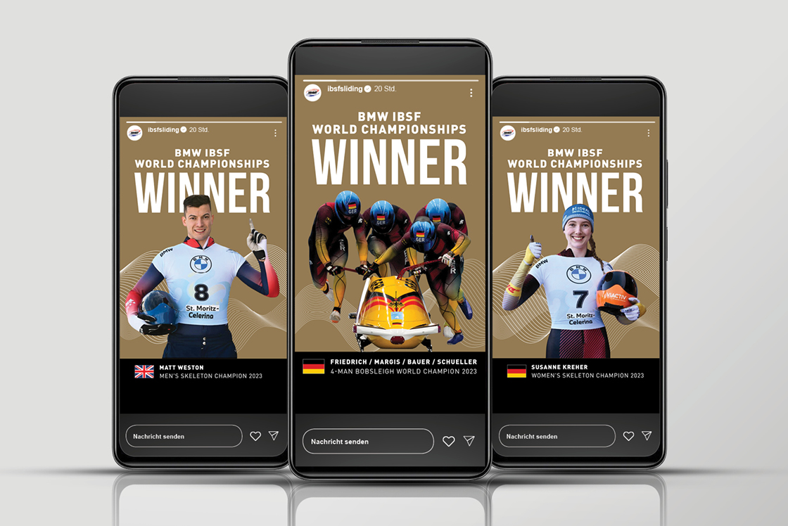 Sport lebt von Geschwindigkeit, Präzision und dem Moment, in dem alles zusammenkommt. Die Internationale Bob und Skeleton Federation verbindet Athlet:innen auf der ganzen Welt – fast 200 Rennen auf drei Kontinenten, 1.100 lizenzierte Sportler:innen, die jedes Detail ihres Sports meistern. Für think why war klar: Ihre Social-Media-Auftritte sollten diese Energie spiegeln. Wir entwickelten ein System aus aufmerksamkeitsstarken Templates, das jede Disziplin eigenständig sichtbar macht und gleichzeitig alle Inhalte vereint. Mit durchdachter Struktur, einfacher Adaptierbarkeit und der Möglichkeit, Ergebnisse in Echtzeit zu teilen, bringen wir die Geschwindigkeit des Sports direkt in die digitalen Kanäle.