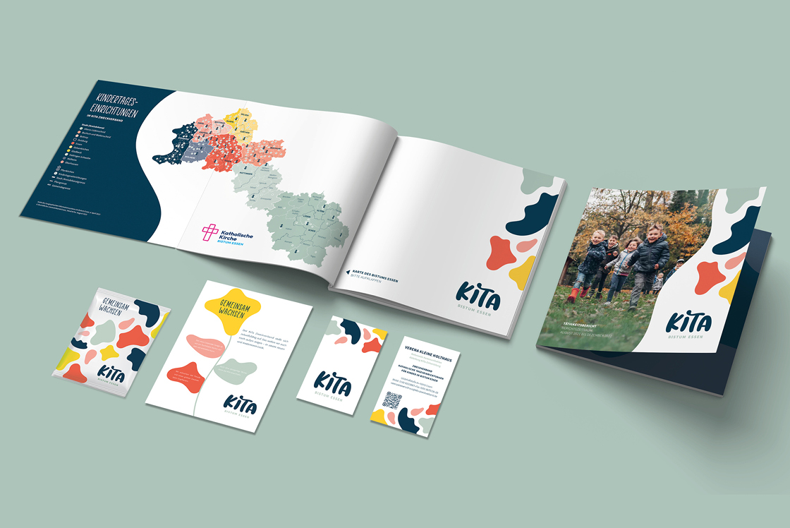 Die Modernisierung der Corporate Brand ist abgeschlossen. Nun starten weitere Maßnahmen zur Weiterentwicklung der Employer Brand. Gleichzeitig erhalten die rund 250 KiTas die Möglichkeit, ihr eigenes Logo im neuen Look anzupassen – damit die Identität des Zweckverbands im ganzen Ruhrbistum sichtbar wird.