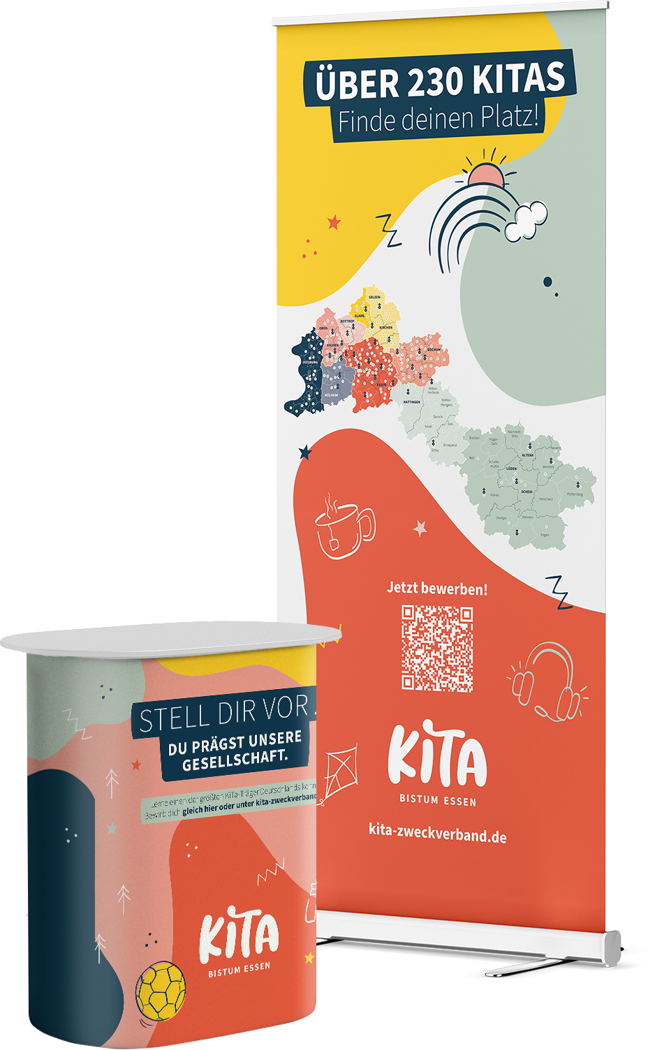 Die Kampagne übersetzt diese Perspektive visuell und emotional. Split-Screen-Motive zeigen auf der einen Seite pädagogische Fachkräfte, authentisch fotografiert in einem eigens konzipierten Shooting. Auf der anderen Seite entsteht eine Ideenwelt, die sichtbar macht, welche Werte, Themen und Impulse sie in ihre Arbeit mit Kindern einbringen.
