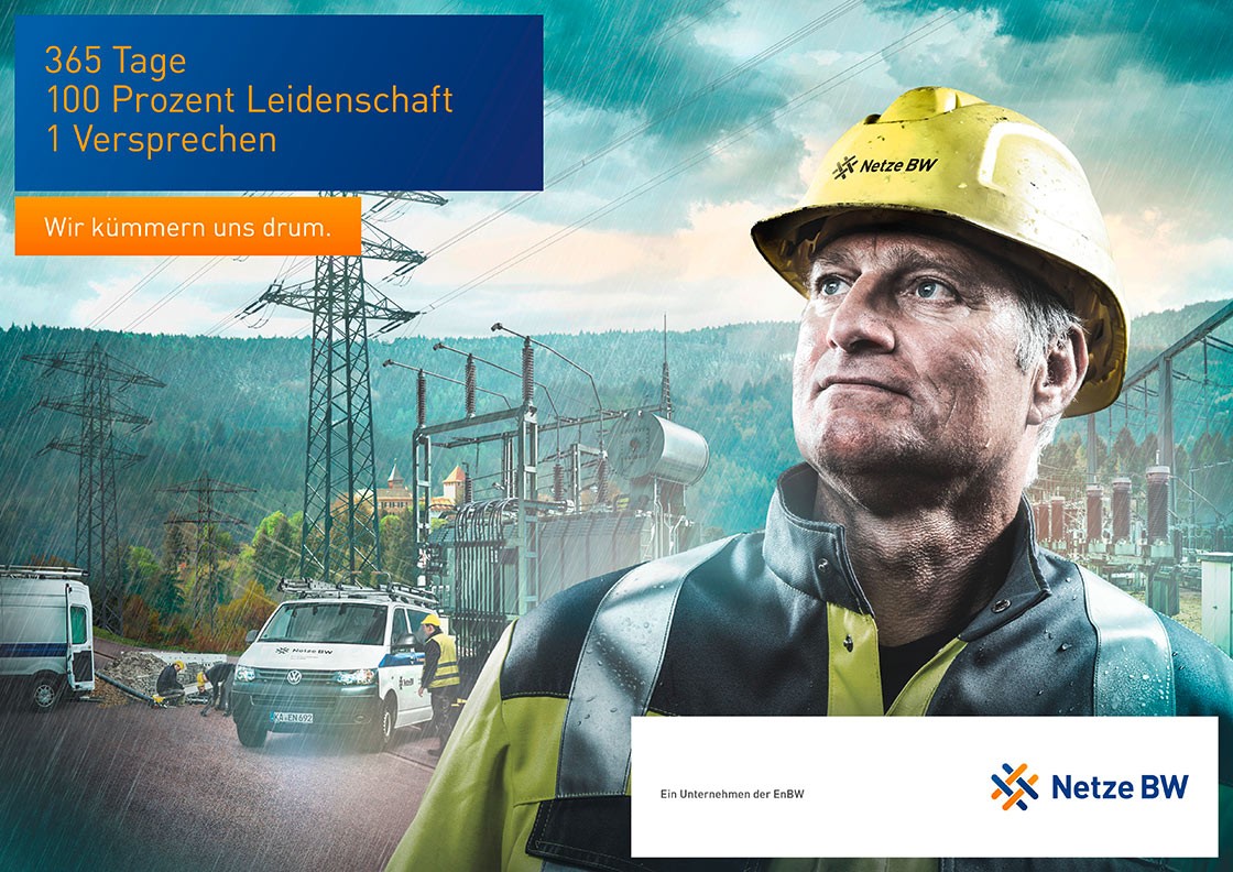 Employer Branding beginnt bei einem Versprechen, das greifbar wird. Für die Netze BW GmbH haben wir ein neues Markenimage entwickelt, das Mitarbeiter und Bewerber gleichermaßen inspiriert. Mit der Kümmerer-Kampagne haben wir ein Markenversprechen geschaffen, das klar und unmittelbar spürbar ist: Wir kümmern uns drum. Dieses Versprechen lebt in jedem Bild, in jeder Botschaft, in jedem Erlebnis. In enger Zusammenarbeit mit think why haben wir Key Visuals und Bildwelten entwickelt, die die verschiedenen Stoßrichtungen des Verteilnetzbetreibers sichtbar machen. Jedes Motiv ist sorgfältig komponiert, jedes Detail bewusst gewählt. So entsteht eine Identität, die nicht nur zeigt, was das Unternehmen tut, sondern auch, wie es sich dabei anfühlt.