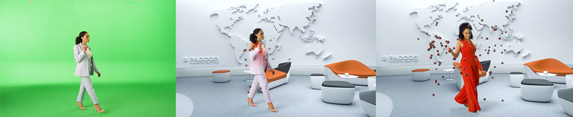 PRODUCTION: Umsetzung Filmproduktion im Greenscreen Studio Matchmoving (Kamera Tracking), Set-Crew (Schauspieler, Projektleitung, Regisseur, Kamerateam, CGI-Team, Motion Designer, Licht- und Tonkollegen); POST-PRODUCTION: Filmschnitt Greenscreen, Aufbereitung 3D Daten, Animatic, Compositing, Shading Lighting, Special Effects, Motion Graphics, CGI, Rendering; FINALISIERUNG: Web-Frontend für Online-Messeauftritt auf interaktiver Video-Basis, Einzelvideos wurden aneinander gelegt und das UI programmiert.