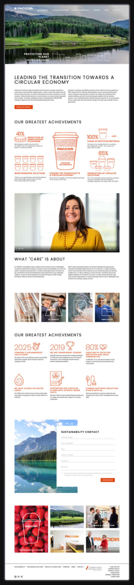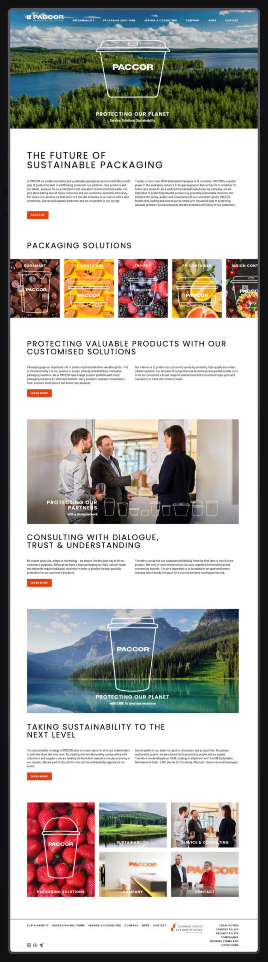 Die neue Website führt Nutzerinnen und Nutzer intuitiv durch die gesamte Markenwelt. Emotionale Einstiege, klare Struktur, verständliche Inhalte. Die Vielfalt des Portfolios wird sichtbar. Die Botschaft dahinter fühlt man sofort. PACCOR übernimmt Verantwortung und lädt ein, mitzudenken.