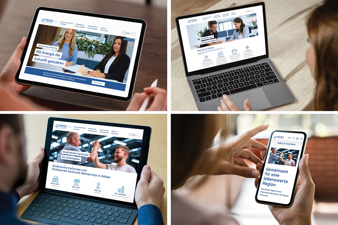 Die Stadtwerke Karlsruhe versorgen die Region zuverlässig mit Energie und Trinkwasser – ein Versprechen, das über 1.100 Mitarbeiterinnen und Mitarbeiter täglich einlösen. think why unterstützte die Stadtwerke dabei, als Arbeitgeber sichtbarer zu werden und mit einer neuen Karrierewebsite die richtigen Talente zu erreichen. Auf Basis einer fundierten Analyse, Zieldefinition und Wettbewerbsrecherche entwickelten wir Personas, optimierten Stellenanzeigen und gestalteten Inhalte neu. Ein Mitarbeiterfotoshooting machte die Menschen hinter dem Unternehmen sichtbar und schuf Authentizität, die auf der Karriereseite spürbar ist. So entsteht eine Plattform, die Bewerberinnen und Bewerber anspricht, begeistert und einlädt, gemeinsam mit den Stadtwerken Karlsruhe die Zukunft zu gestalten.