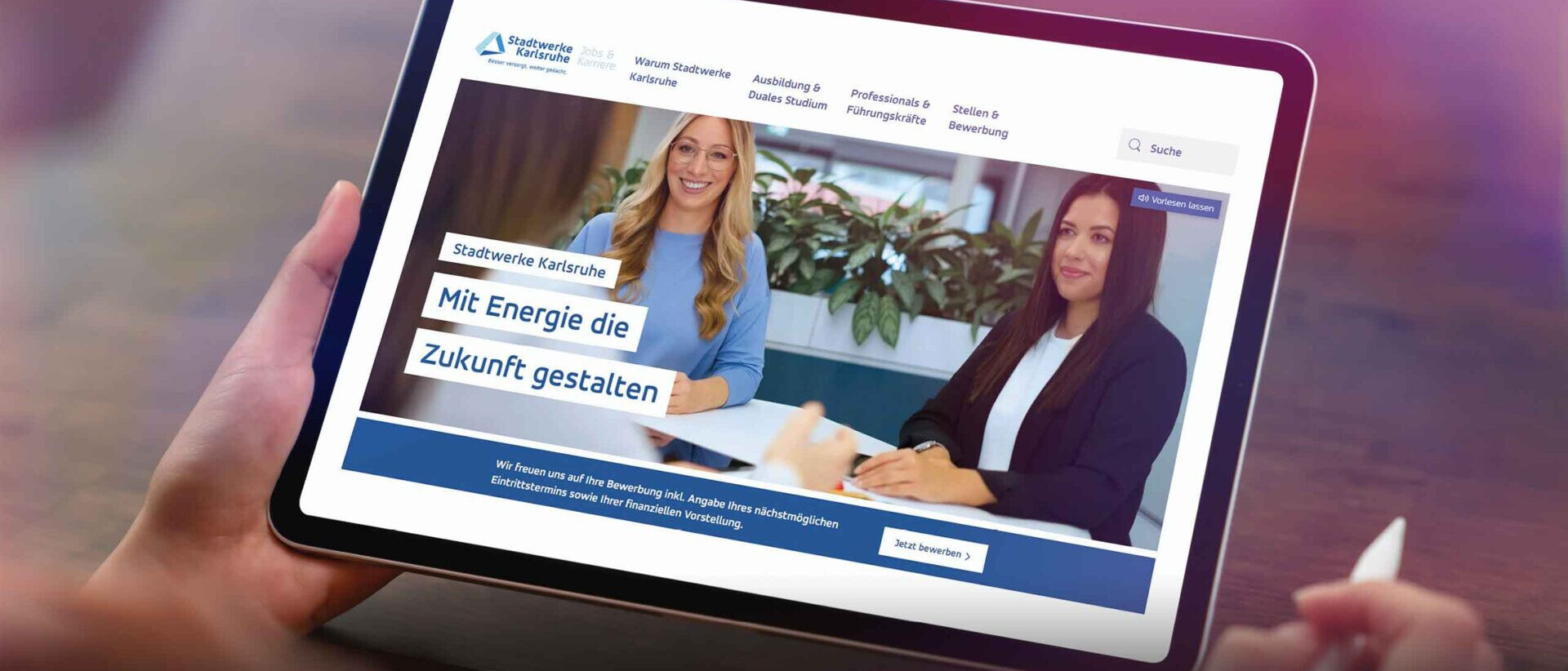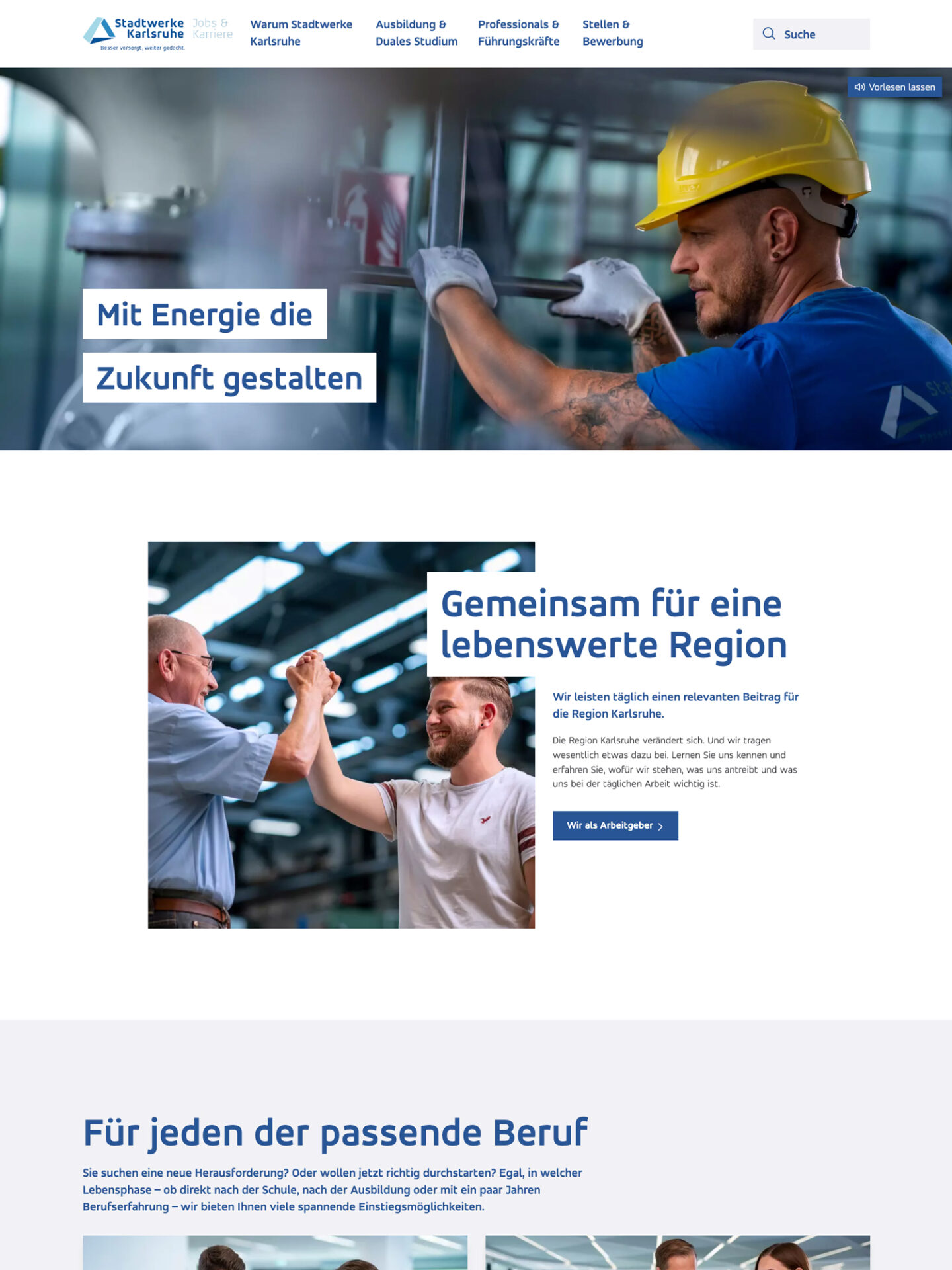 Die Stadtwerke Karlsruhe versorgen die Region zuverlässig mit Energie und Trinkwasser – ein Versprechen, das über 1.100 Mitarbeiterinnen und Mitarbeiter täglich einlösen. think why unterstützte die Stadtwerke dabei, als Arbeitgeber sichtbarer zu werden und mit einer neuen Karrierewebsite die richtigen Talente zu erreichen. Auf Basis einer fundierten Analyse, Zieldefinition und Wettbewerbsrecherche entwickelten wir Personas, optimierten Stellenanzeigen und gestalteten Inhalte neu. Ein Mitarbeiterfotoshooting machte die Menschen hinter dem Unternehmen sichtbar und schuf Authentizität, die auf der Karriereseite spürbar ist. So entsteht eine Plattform, die Bewerberinnen und Bewerber anspricht, begeistert und einlädt, gemeinsam mit den Stadtwerken Karlsruhe die Zukunft zu gestalten.